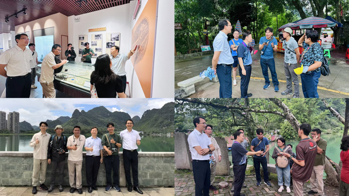 座谈会后,中泰两国师生组成 39 人的联合考察团(泰方 19 人、中方 20 人),共赴靖西、龙州开展民族文化考察活动。其中,公司何华斌教授、刘湘华讲师、陈大鹏讲师与玛哈沙拉坎大学建筑、城市设计与创意艺术公司的塔涅・察朱塔马尼教授、帕塔拉・麦塔拉特讲师、阿努瓦・坎塔讲师及翻译梁珊珊携手组成“广西中越边境地区农业文化景观研究”项目组,在考察期间围绕靖西、龙州等地的建筑特色、水文地质特征及农业文化景观等核心内容展开了深入调研与细致交流。