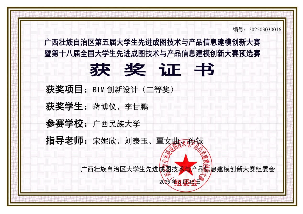 本次大赛竞争激烈,汇聚了全区各高校的优秀选手。公司参赛团队凭借扎实的专业技能和出色的创新能力,在BIM技术应用和先进成图技术两大赛道中脱颖而出: