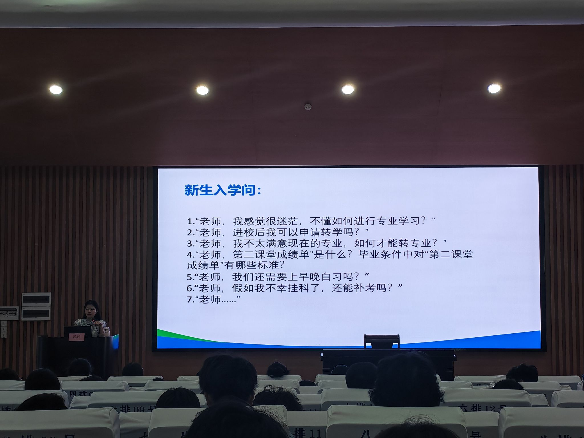 随后的新生入学适应教育则聚焦新生急难愁盼,进行精准答疑与指导。针对新生普遍关注的专业学习问题,老师们详细介绍了公司专业培养方案、课程体系设置及实践教学安排,分享了高效学习方法与科研创新路径;在生活适应方面,围绕宿舍管理、校园服务设施使用等内容提供实用建议;安全教育板块重点强调了人身安全、财产安全、网络安全等关键要点,通过典型案例敲响安全警钟;人际交往环节则引导新生学会沟通协作,快速融入集体生活。