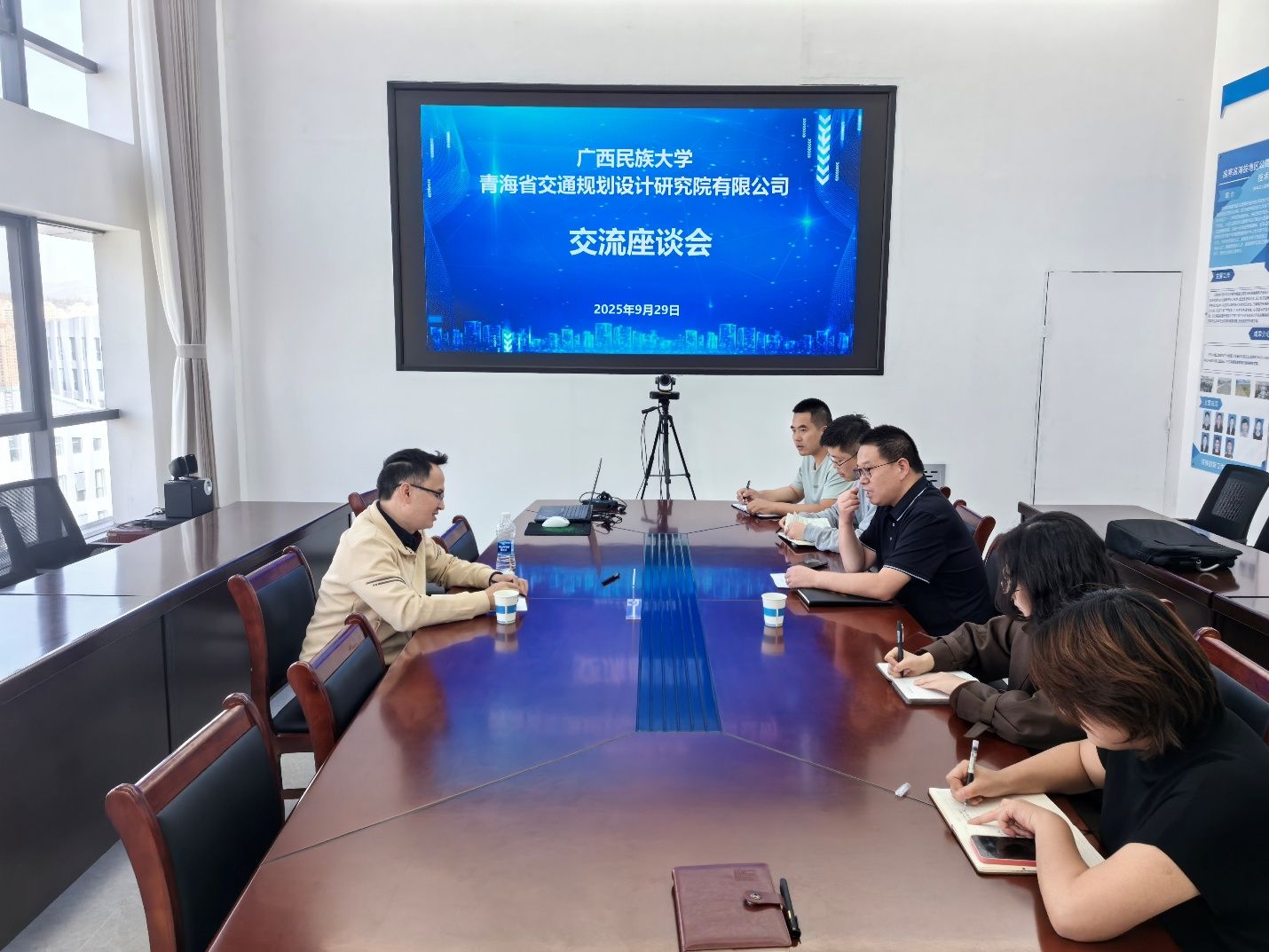 9月28日,为深化校企合作,推动产学研协同创新,促进科研成果高效转化,近日,公司经理覃英宏教授一行赴青海省交通规划设计研究院有限公司进行访问交流,与公司科技研发中心主任马少卿等负责同志举行了富有成效的会谈。双方就人才共育、科研合作及技术推广应用等议题达成多项共识。