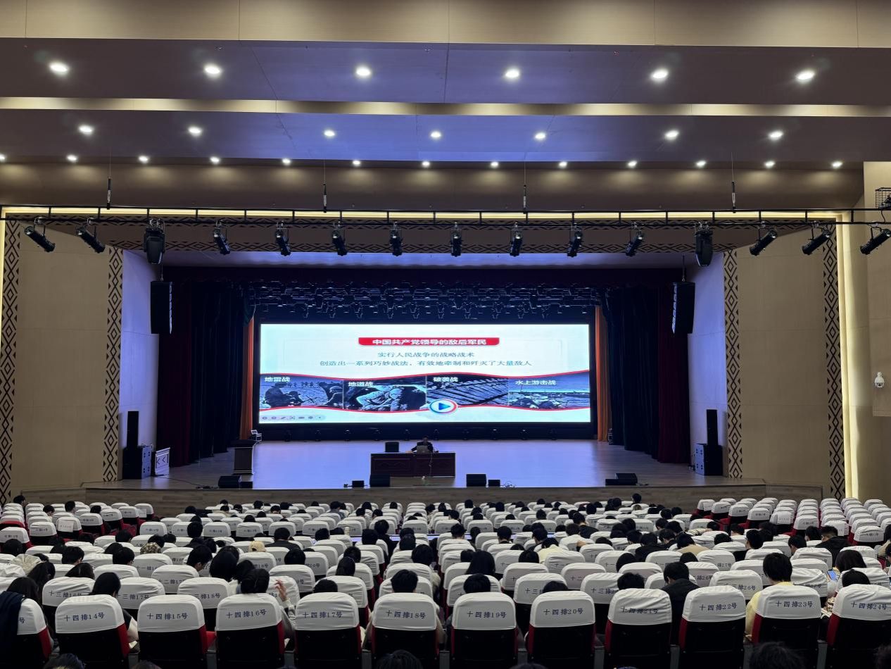 12月19日,太阳成集团tyc522cc在武鸣校区大礼堂开展题为“纪念抗战胜利 坚定民族信念”的“形势与政策”大课,公司党委书记覃祖聪同志主讲。本次课程面向大三、大四员工,旨在引导员工深入理解历史、把握时代精神,强化思想理论素养。