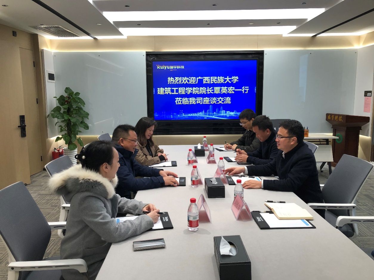 广西瑞宇科技集团有限公司董事长欧孝夺、广西云策科技有限公司总经理董庆华对调研组一行的到来表示热烈欢迎,并就集团公司建设发展概况及下一步发展规划向调研组作详细介绍。