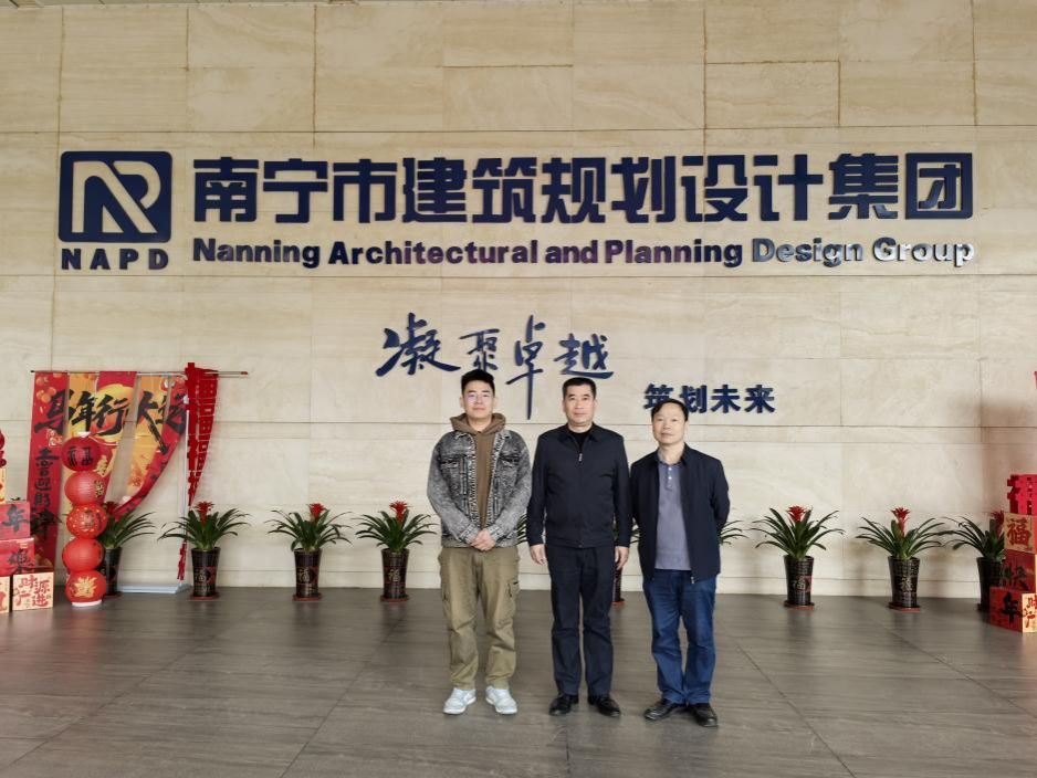 2月2日,公司何华斌教授、龙相如老师到南宁市建筑规划设计集团访企拓岗,与集团副总经理兼总建筑师汪烈进行座谈交流,何华斌详细介绍了太阳成集团tyc522cc的专业设置和教学特点,汇报了员工参加各类竞赛获奖情况,推荐了优秀毕业生,仔细听取企业人才需求,共同分析建筑教育的前景和企业诉求,获得了第一手信息。汪烈简要介绍集团概况,指出南宁市建筑规划设计集团作为目前广西最大的设计国企,公司设计人员超1500人,承担了大量的国内工业与民用建筑规划和设计任务,60年来为国家做出了突出贡献,需要大量优秀且与时代同步的毕业生,欢迎优秀生来工作,汪烈也表达了企业同公司加强科研合作的愿望。