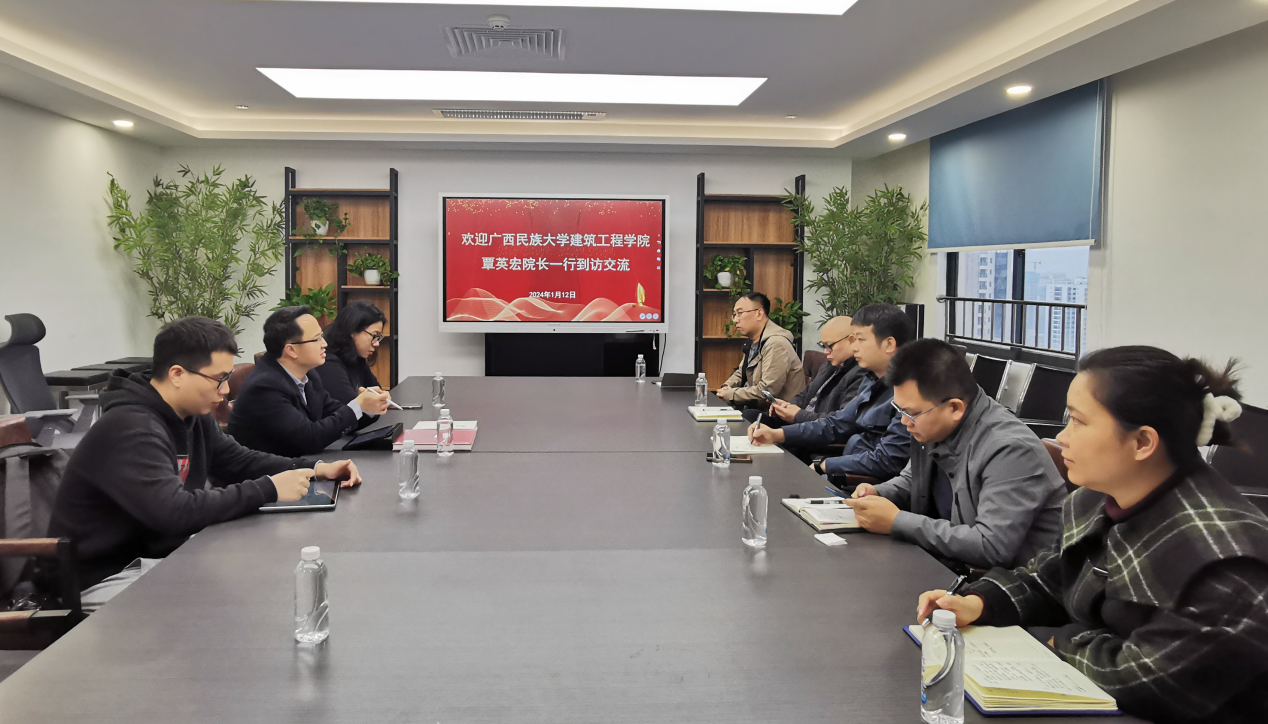 2024年1月12日,太阳成集团tyc522cc经理覃英宏等一行赴华蓝设计(集团)有限公司开展访企拓岗交流活动,旨在加深校企合作与交流。华蓝设计(集团)有限公司市政和园林设计院经理李儒涛及院所领导5人参与本次交流座谈。
