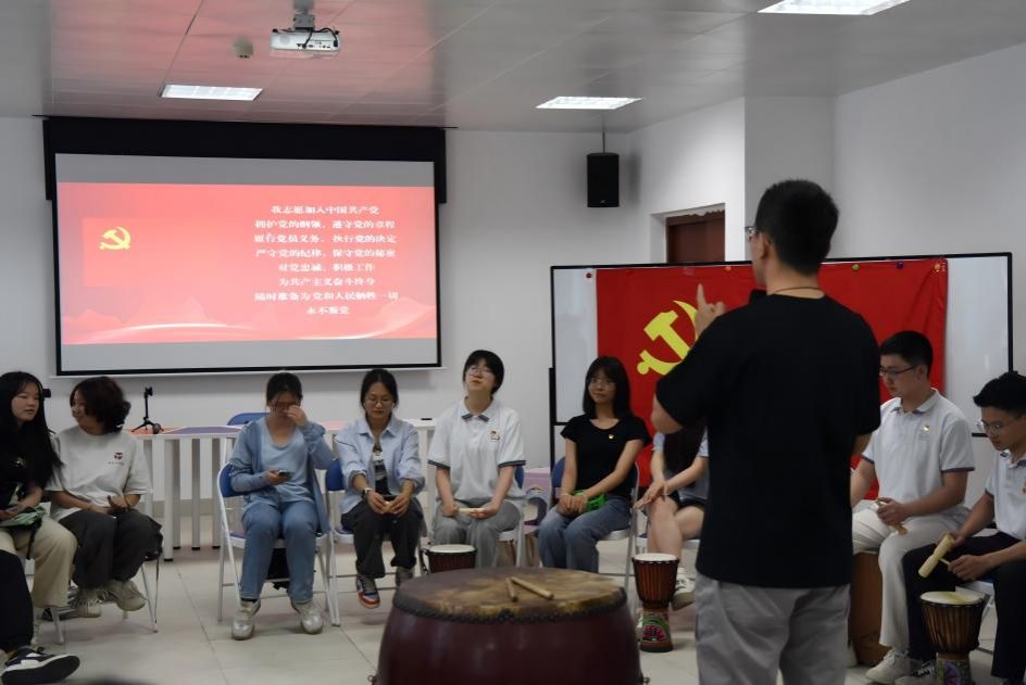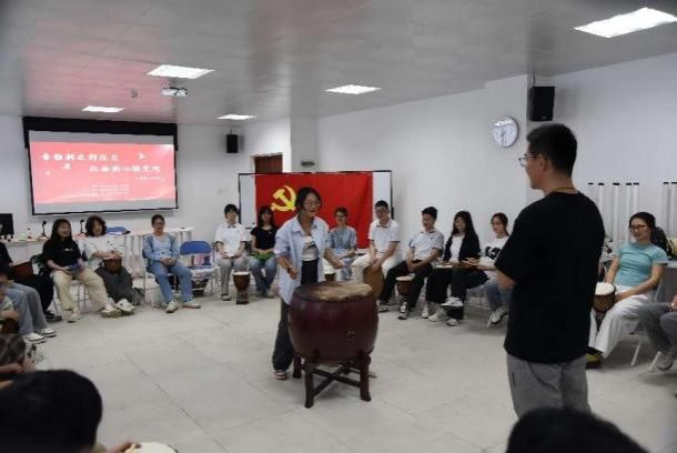 在“鼓圈引领”环节,党员们围坐成圈,手持非洲鼓、铃铛等打击乐器,在李凯老师的指挥下即兴创作节奏演奏。随着鼓点从零散到统一,参与者逐渐感知“个体节奏融入集体共鸣”的协作理念。“起初各敲各的有点乱,后来在老师的引导下自然而然形成合力,就像只有在党组织的领导下我们所有人信念一致才能凝聚战斗力。”员工党员在活动后感慨。这一环节通过沉浸式体验,生动演绎了基层党组织“团结-协作-攻坚”的行动逻辑。