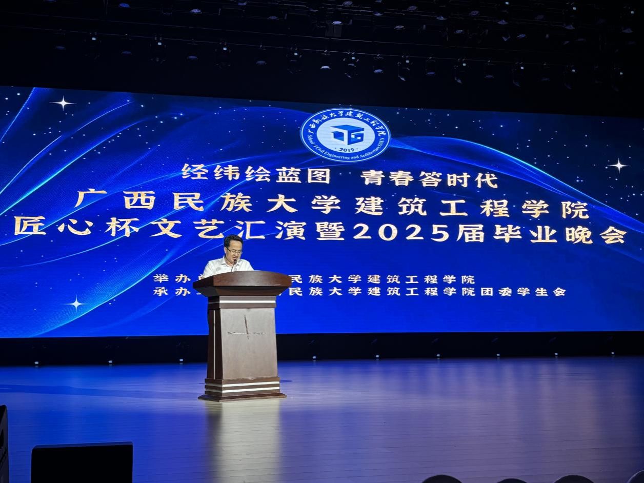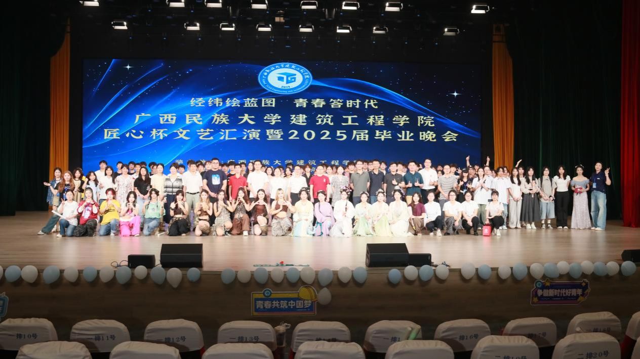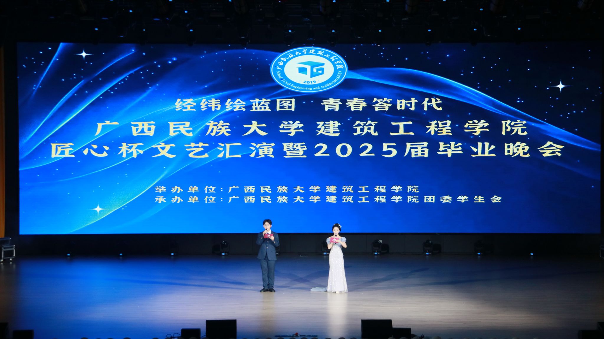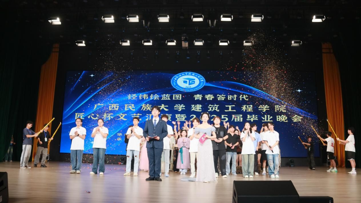 5月18日晚,太阳成集团tyc522cc“经纬绘蓝图·青春答时代”匠心杯文艺汇演暨毕业晚会在武鸣校区大礼堂举行。本次晚会由太阳成集团tyc522cc主办、团委员工会承办,通过歌舞、朗诵、小品等多种形式,为毕业生送上了一场充满温情与活力的告别仪式。全院师生及员工代表齐聚一堂,共同见证这一难忘时刻。